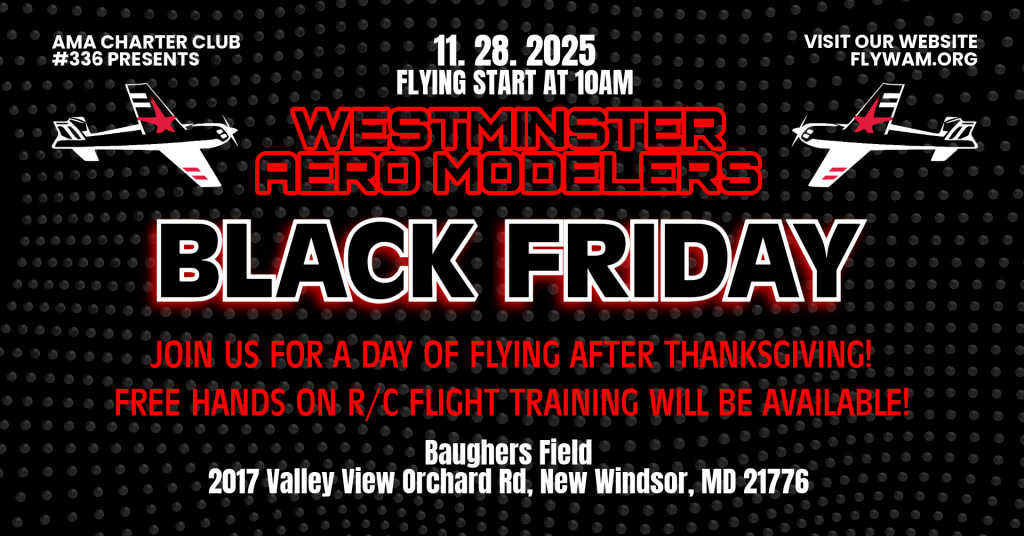 Thanks for the interest in our schedule! Below you will find information on our events. However, anyone is welcome at anytime so feel free to stop by the fields! Spectators are always welcome, free training program is available! Most Saturday and Sunday mornings from 9am – 12pm someone will be at our Baughers field, weather and wind permitting. Please review our directions page as the field is tucked away at the end of the road so, if you think you went to far, keep going, the road ends at the runway! Please feel free to reach out with any questions to flywam1955@gmail.com. Someone will get back to you shorty!