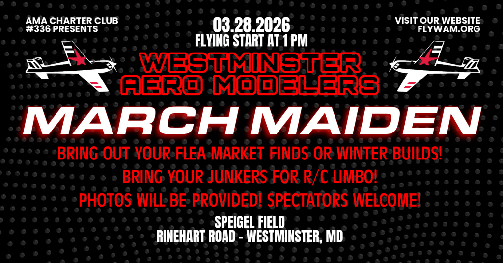 Thanks for the interest in our schedule! Below you will find information on our events. However, anyone is welcome at anytime so feel free to stop by the fields! Spectators are always welcome, free training program is available! Most Saturday and Sunday mornings from 9am – 12pm someone will be at our Baughers field, weather and wind permitting. Please review our directions page as the field is tucked away at the end of the road so, if you think you went to far, keep going, the road ends at the runway! Please feel free to reach out with any questions to flywam1955@gmail.com. Someone will get back to you shorty!